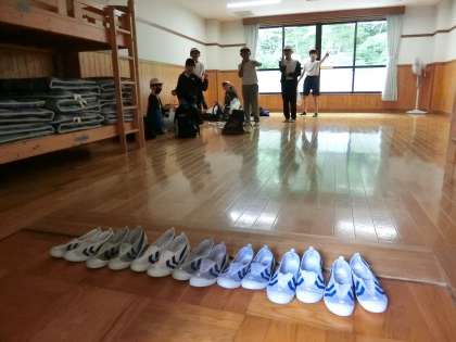 六所山について入所式を行った後、部屋で荷物整理です。シューズがとてもきれいに並べてあるのには感動です。