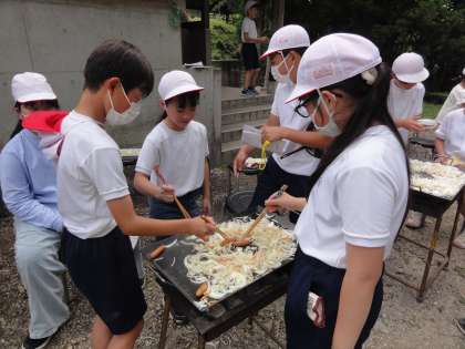 焼きそばやオリエンテーリングで獲得したシュウマイや餃子などを焼いて食べた後に、焼きマシュマロも楽しみ、みんな満腹になりました。