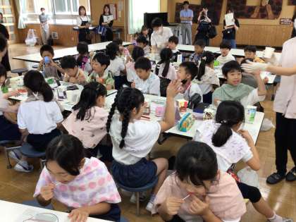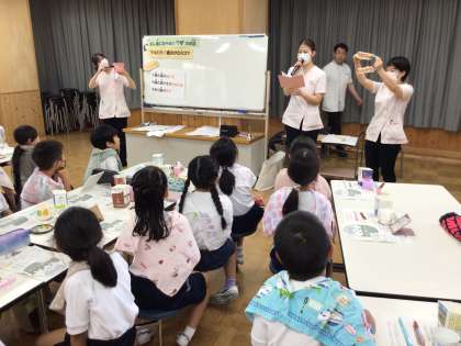 学校医である鈴木歯科の先生方を講師に招いて、歯科講習会を行いました。会の前半は、歯磨きの方法について詳しく学びました。染め出し液をつかって歯の汚れを確認した後、歯医者さんに教えてもらった通りにして、きれいに磨くことができました。後半は、歯並びを良くするための姿勢について学びました。どちらもこれからの生活の中でしっかりと生かし、歯の健康を保っていけるとよいです。