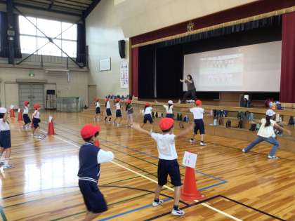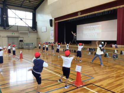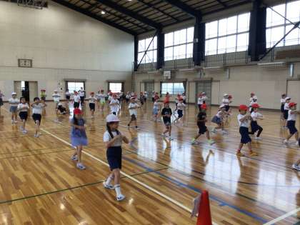 体育館にて、運動会で発表するおいでんダンスの練習を行いました。ポップ調のダンスを踊るのは初めてでしたが、子供たちは踊りをしっかり覚えようと、手足を元気よく伸ばして一生懸命に踊っていました。運動会本番では、キレキレのダンスを保護者のみなさんに見せられるよう、今から張り切って取組んでいます。