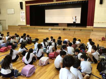 市役所の方を講師に招き、「子ども防犯教室」を行いました。前半は、不審者の見分け方や危険な場所について映像を通して学びました。後半は、不審者から身を守る方法を体験的に教えていただきました。子供たちの安全への意識も大いに高まりました。