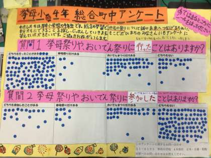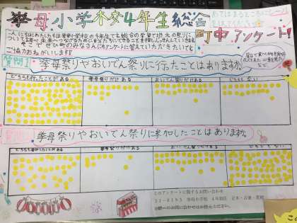 9月9日から17日まで総合的な学習の授業の内容として、挙母祭りとおいでんまつりの参加状況などのアンケートをとるためにポスターを掲示させていただきました。