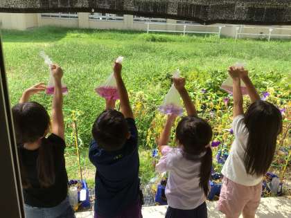 暑い日がまだまだ続いています。そのような中でも、休み時間を工夫して過ごしています。