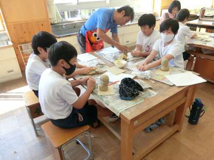9月8、9、10日の図工の時間に、シーサーを作りました。