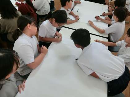 また、しゃべらずに紙に書いてコミュニケーションをとる体験をしました。「書くのは大変だと思っていたけど、楽しさに気づいた」「書いている間、手元を見ながら待ってくれているのがうれしかった」など、普段は気づかない発見があったようです。