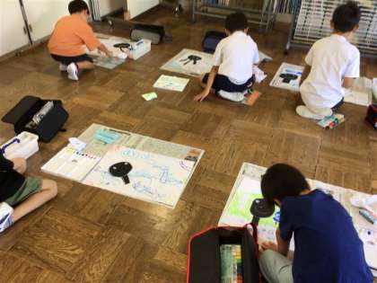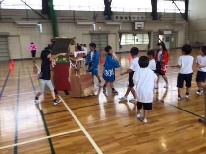 4年生にミニ挙母祭りに招待されました。4年生が調べたことを教えてもらいました。また、素敵な山車や紙吹雪、おはやし体験をさせてもらいました。