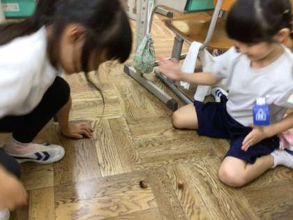 生活科「あきとなかよし」の学習で、拾ってきたどんぐりでどんな遊びができるか考えました。上手にどんぐりを回転させて、大喜びでした。