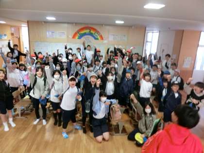 朝は少し雨が降ったため、登校後よつばルーム前で5年生全員で気合を入れました。