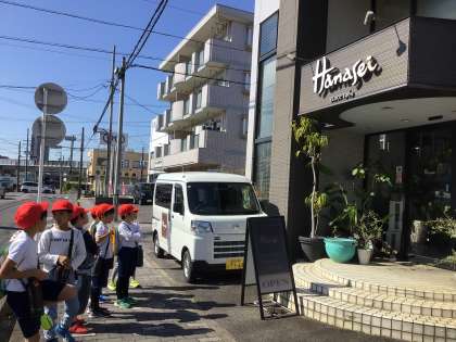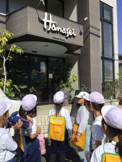 生活科「わたしの町はっけん」の学習で、挙母の町のすてきな場所・もの・人を見つけるために、町探検に出かけました。学校のすぐ近くにあるお店を外から見ました。お店の前に着くと、「ここで花を買ったことがあるよ」という声も聞かれました。花成コースの2回目の探検では、店内の様子を調べたり、お店の方に質問したりしたいと思っています。