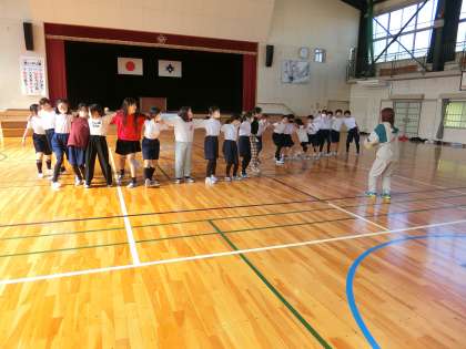 前半はクラスで作戦を考えながらゲームを行い、協力の大切さを学びました。