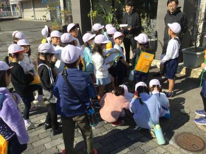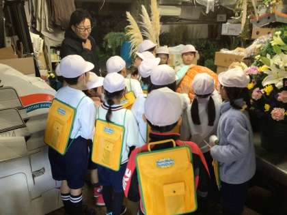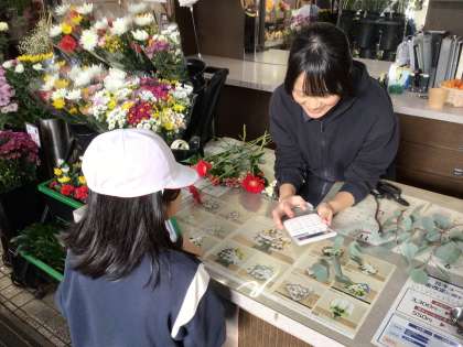 2年生の町探検では、平芝区民会館、花成、崇化館交流館の3つのコースに分かれて、各施設の見学に行きました。花成コースでは、きれいなお花の種類について質問しました。また、お花の冷蔵庫の中に入れてもらったり、店員さんがどんな気持ちで働いているかなどのお話を聞いたりと、多くのことを学べる貴重な時間となりました。花成コースの町探検で学んだことを、各クラスでの発表に活かしてほしいと思います。