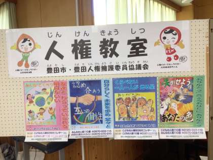 人権教室の出前授業を行いました。DVDの教育ドラマを見て、誰もが幸せに生きる方法を考え、仲間と発表し合いました。