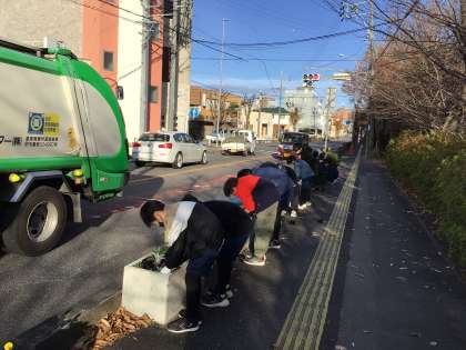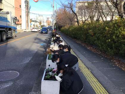 フラワーロードに新しい苗を植えました。まだ小さな苗を手際よく植えていました。今回植えた苗は、卒業式の頃まで綺麗な花を咲かせて、挙母小学校の正門前を彩ってくれると思います。
