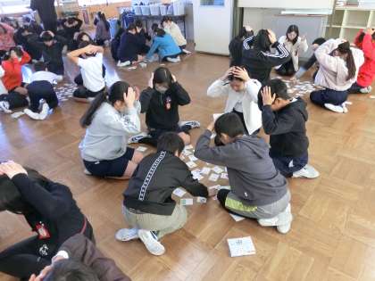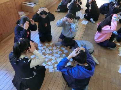 書き初め大会の後はかるた大会を行いました。