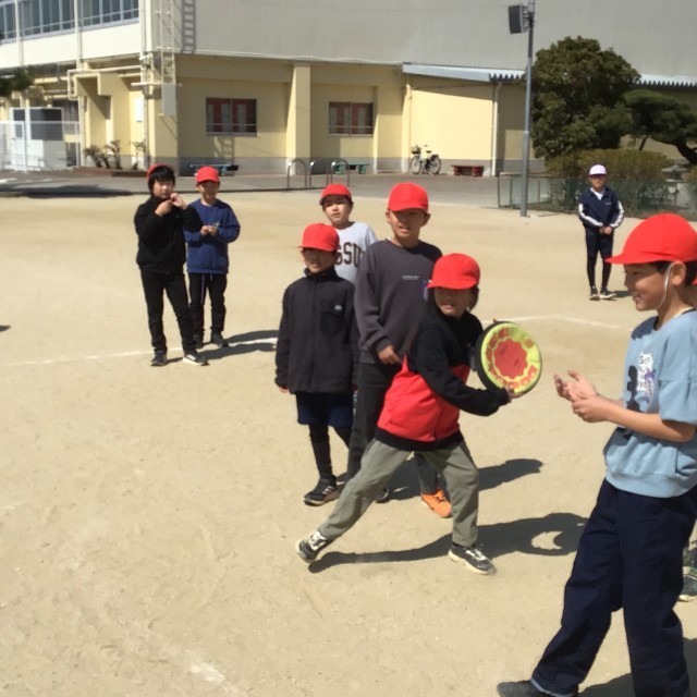 生活習慣向上プロジェクトの目標達成を記念して、学年のお楽しみ会を行いました。今回は3クラス対抗のドッジビー大会で盛り上がりました。ドッジビーはドッジボールとちがって、当たっても痛くないという安心感があります。おかげで全員が積極的にゲームに熱中することができました。さて、3年生としての学校生活も残りわずかとなりましたが、このような仲間との楽しい思い出をたくさん作っていきたいものです。