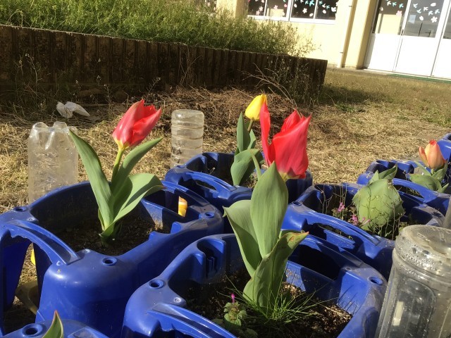 11月に植えたチューリップの花が、少しずつ咲いてきました。春の気配が近づいてきました。