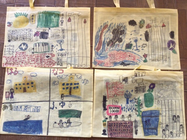 学習では、1年のまとめをしています。また、教室の掲示物や学習で使用したプリント類の整理をして、お家に持ち帰っています。作品バックには、1年の思い出の絵が描かれています。ぜひ、持ち帰った作品バックをじっくりご覧ください。