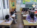 冬休み明け初日、校内書き初め大会が行われました。入賞を目指して真剣な表情で集中...