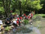 2組が、トヨタの森で自然を楽しみました。 赤白どちらのチームも池の中の生き物...