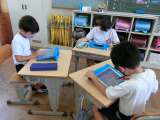 2年生から、掃除の仕方やエプロンのたたみ方、鉛筆の持ち方などを教えてもらいまし...