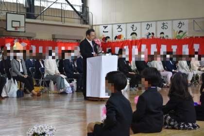 密を避けるため、新1年生と保護者の皆様で、入学式を行いました。