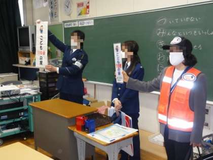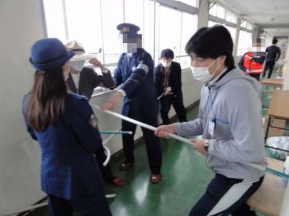 その後、おまわりさんから不審者が侵入した時の対応の仕方をお話していただきました。