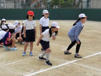 5〜6年生 50m走、立ち幅跳び、ソフトボール投げ、反復横跳び、長座体前屈、シャトルラン