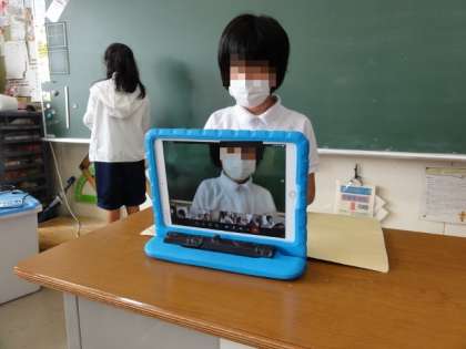風邪症状の児童やご家族に発熱等の風邪症状が見られる場合なども、登校を控えていただいていますが、ご家庭で学習用タブレットを使って、オンライン学習やプリントや問題集での学習もあわせて、学習できる環境を作っていきます。