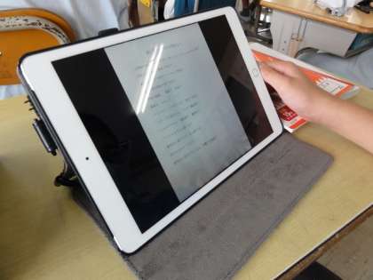 【下の写真】タブレットで、学習プリントを配信