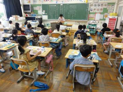 給食時は、感染防止のために、前を向いて黙食です。