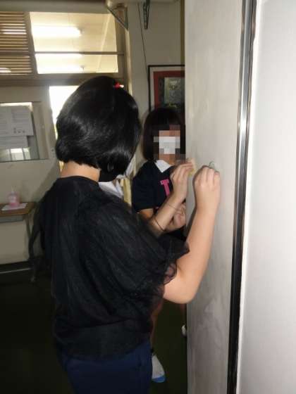 【中の写真】清掃の時間、6年生が校内の壁を磨いてくれています。