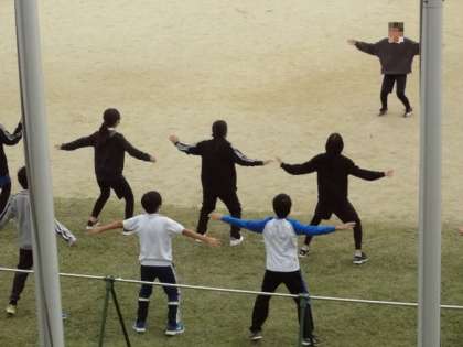 高学年では、6年生が考えた応援を5年生に教えて、演技を完成させています。