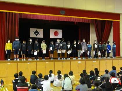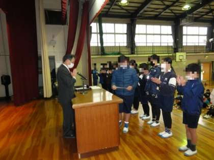 全校が体育館に集まることができませんので、今日は、6年生のみ集合し、学級代表や正副委員長の認証を行いました。