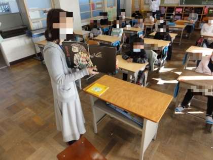 コロナ感染拡大のために、中止としていたみかんの花の会による読み聞かせを再開しました。子どもたちは、この読み聞かせを楽しみにしていたようで、どの学年の子も、真剣に聞き入っていました。