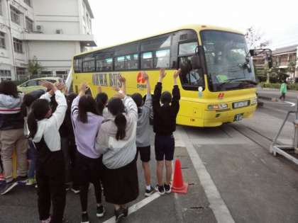 別れの時は、「来年も来てね」と、名残惜しそうにバスを見送りました。