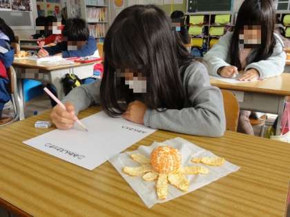 各学年で、収穫したみかんを使って「みかんにまつわる授業」を実施しました。