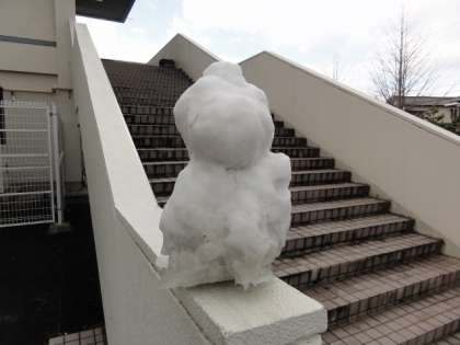 朝、窓から外を見ると、うっすら白く雪が積もっていました。子どもたちは、雪を投げたり、雪だるまを作ったり、久しぶりの雪を楽しみました。