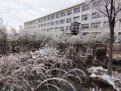 今年は、雪が降ることが多く、今日も学校がうっすらと白くなりました。