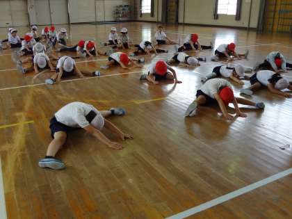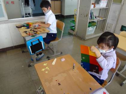1年生は算数、2年生は図工、3年生は体育の授業風景です。