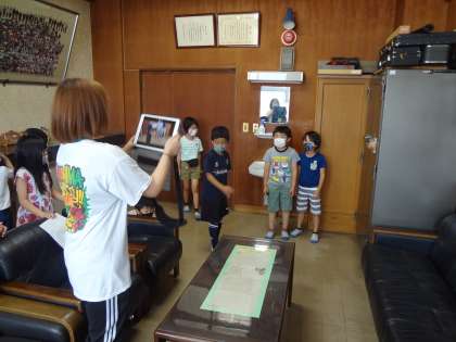 2年生が学校を案内するビデオを撮影しています。4年生、ハンドサインで意見を示しています。みはな学級で、それぞれの課題に真剣に取り組んでいます。