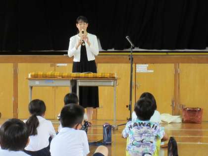 3年生がリコーダー講習会を行いました。講師の方の演奏を聞かせていただいたり、演奏するときのポイントを教えていただいたりしました。