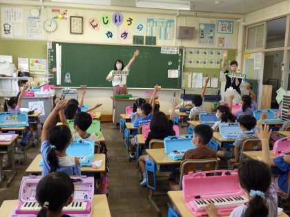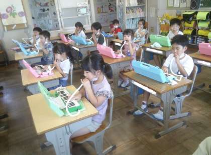 講師の方をお招きして、鍵盤ハーモニカの演奏の仕方を教えていただきました。講師の先生のお話をしっかり聞いて、鍵盤ハーモニカが上手に演奏できるようにがんばっていきます。