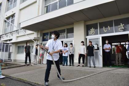 消火栓の放水訓練、講師を招いての学習会、コンピュータ室でICTの研修会を行いました。