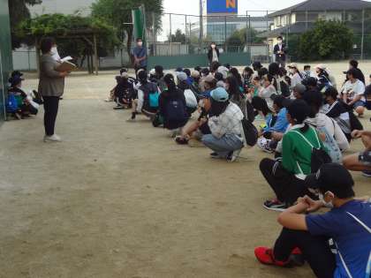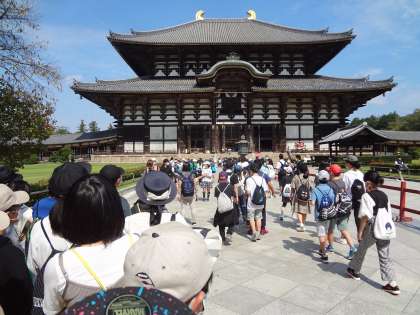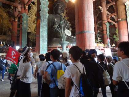 6年生が修学旅行へ出かけました。学校で出発式を行いました。はじめに東大寺に行き、奈良の大仏を見学しました。