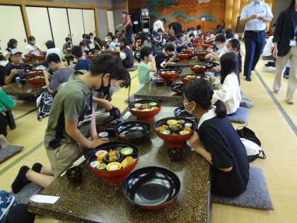 お世話になった旅館です。旅館の方、タクシーの運転手さんに見送られてタクシー研修に出かけました。お昼は金閣寺の前のお店で、おいしくいただきました。