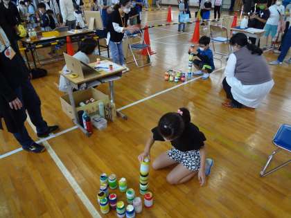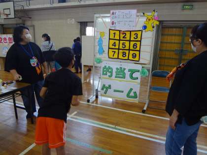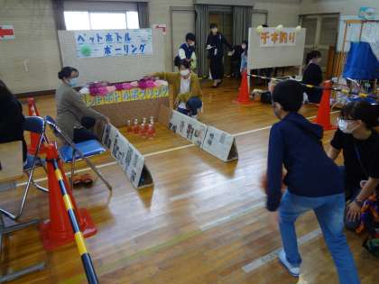育友会主催のハッピーフェスティバルが行われました。ペットボトルボウリングや的あてゲーム、空き缶積みなど、子どもたちが笑顔で過ごす楽しい1日となりました。