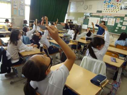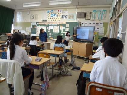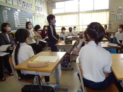 「大人に近づくと体の中にも変化はおこるのかな。男子と女子で違いはあるのかな」をテーマに、養護教諭が授業を行いました。卵子や精子の形や大きさなども学習しました。近くの学校の養護教諭も授業を参観しました。