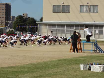 運動会の練習を頑張っています。算数の授業で、文章題を図に表す問題で自分の意見を発表しています。