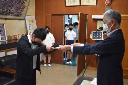 後期の学級代表、委員会の正・副委員長の認証式をオンラインで行いました。