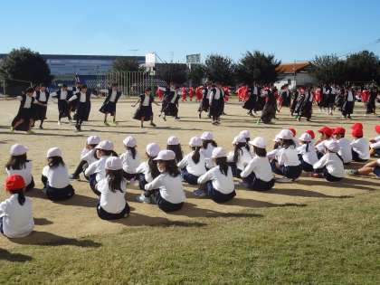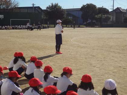 運動会で行う表現運動を全校で見合う、運動会下見会を行いました。はじめに、テーマの発表を児童代表が行いました。運動会テーマは「みんなが主役のショータイム 〜心を一つに輝こう」です。3・4年生が最初に発表しました。